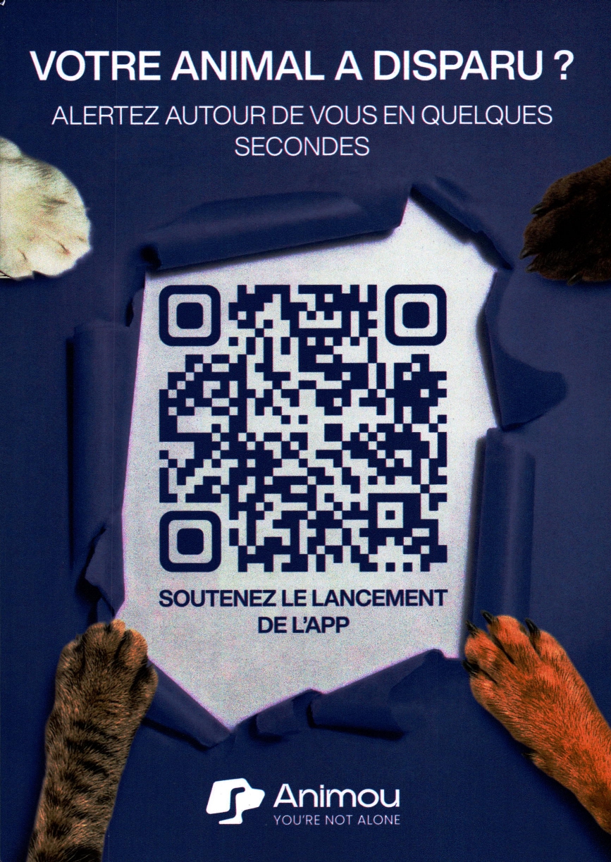 Animou arrive bientôt. La première application qui mobilise instantanément votre quartier lorsqu’un animal disparaît.
